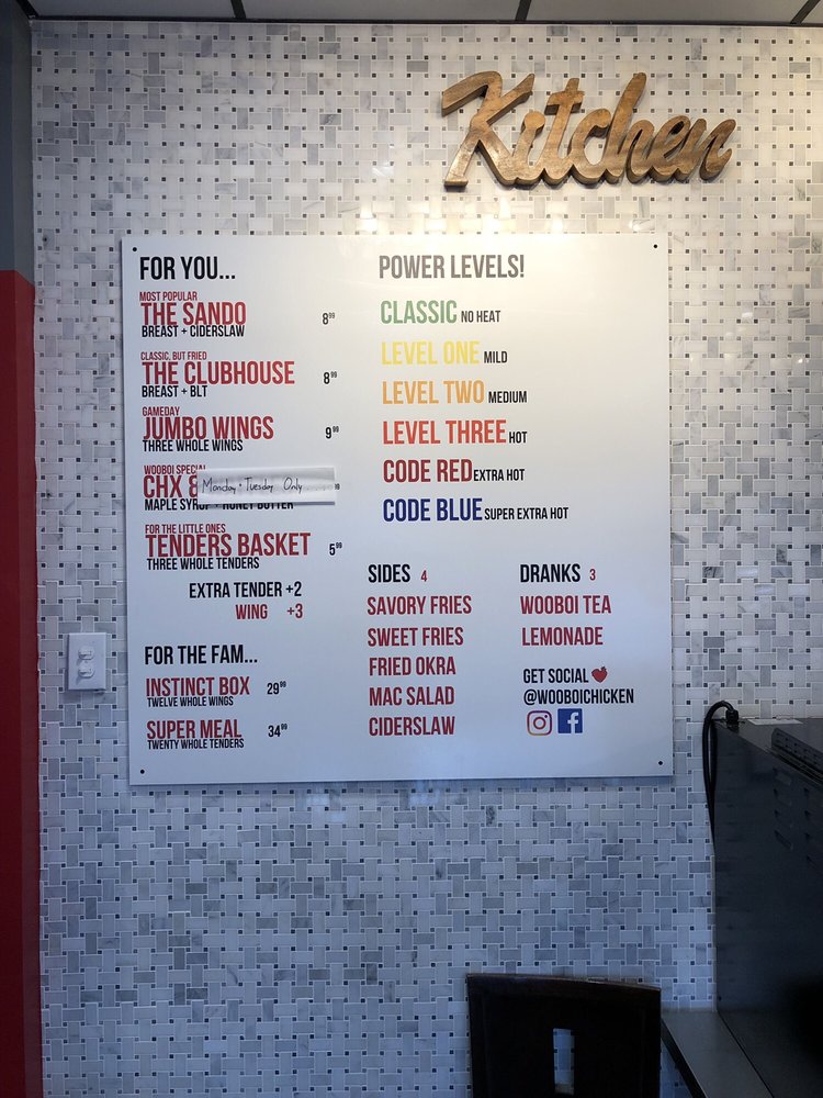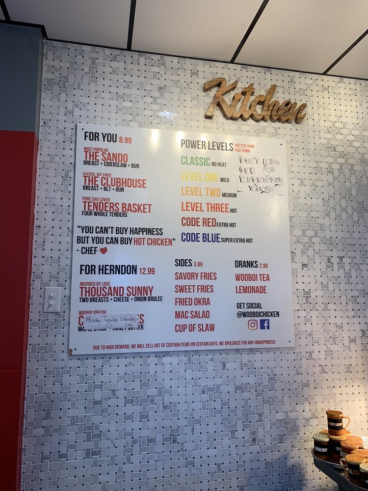 Wooboi Hot Chicken is a trendy, casual restaurant in Herndon, VA, offering a variety of mouth-watering chicken dishes. Their signature mains include the CHX&WAFFLES, JUNIOR SANDO, and TORTA, all bursting with flavors and perfectly cooked chicken. The menu also features delicious sides like CHOI FRIES and BANANA PUDDING, as well as a selection of unique sauces to enhance your meal. Customers rave about the juicy chicken, fresh coleslaw, and perfectly seasoned fries. The friendly staff and cozy ambiance make Wooboi a must-visit for chicken lovers. The restaurant also offers delivery, takeout, and catering services. If you're a fan of spicy flavors and quality ingredients, Wooboi Hot Chicken is the place to be.